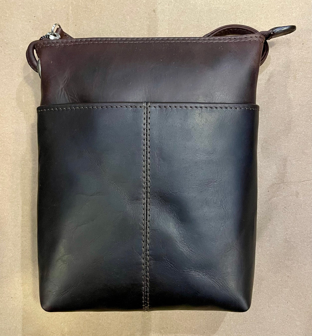 a fully adjustable cross body bag, genuine leather, cowhide specifically, in tons of colors. a classic we've carried for two decades. 6 x 7.5 x1.25